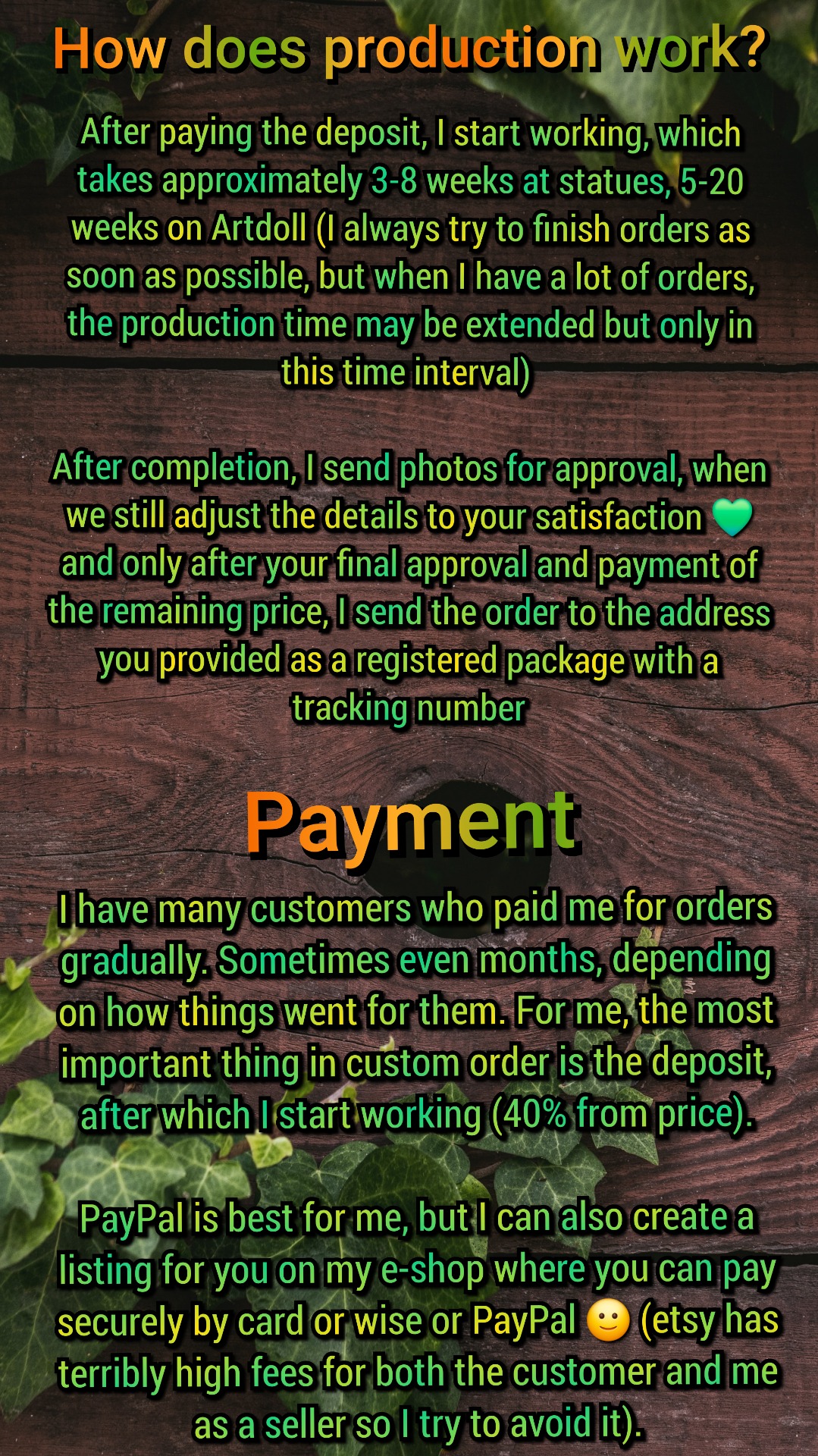 So if you are interested in a custom order, you can place an order directly here, simply choose the most suitable option from the ones below. After ordering, please send photos and a description of how you want your custom order to look to the email: dalie.creations@gmail.com