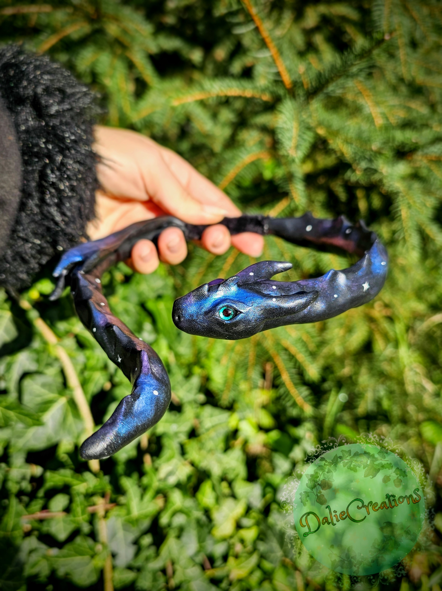 The Dragon Necklace is a celebration of Dragon beauty. If you love Dragons and wanted to take them with you everywhere as your guardian and protector, now is your chance! Dragon hoops stay firmly in place, are comfortable to wear and can be narrowed or expanded as needed. Even when jumping out, they hold in place, but they can hit you a little because they weigh more than the chain :) this is a massive but elegant piece of jewelry. It's comfortable to wear, they don't get caught in your hair, but if you tend to wear lace or lace things, the horns of the Dragon can get caught in them.