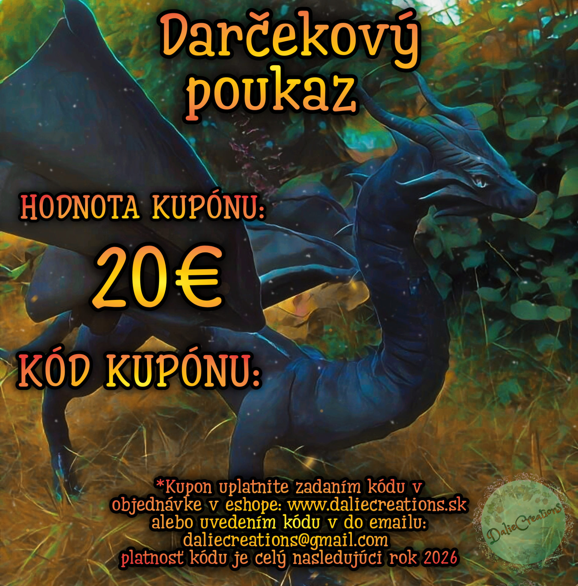 Your loved ones can easily turn it into a decoration, piece of jewelry or ArtDoll. Gift voucher is in worth 10, 20, 50, 100 or 200 euros. I send it in electronic form after the payment is credited, thanks to which you can conveniently pick it up in your email inbox, where you will also find a printable version.