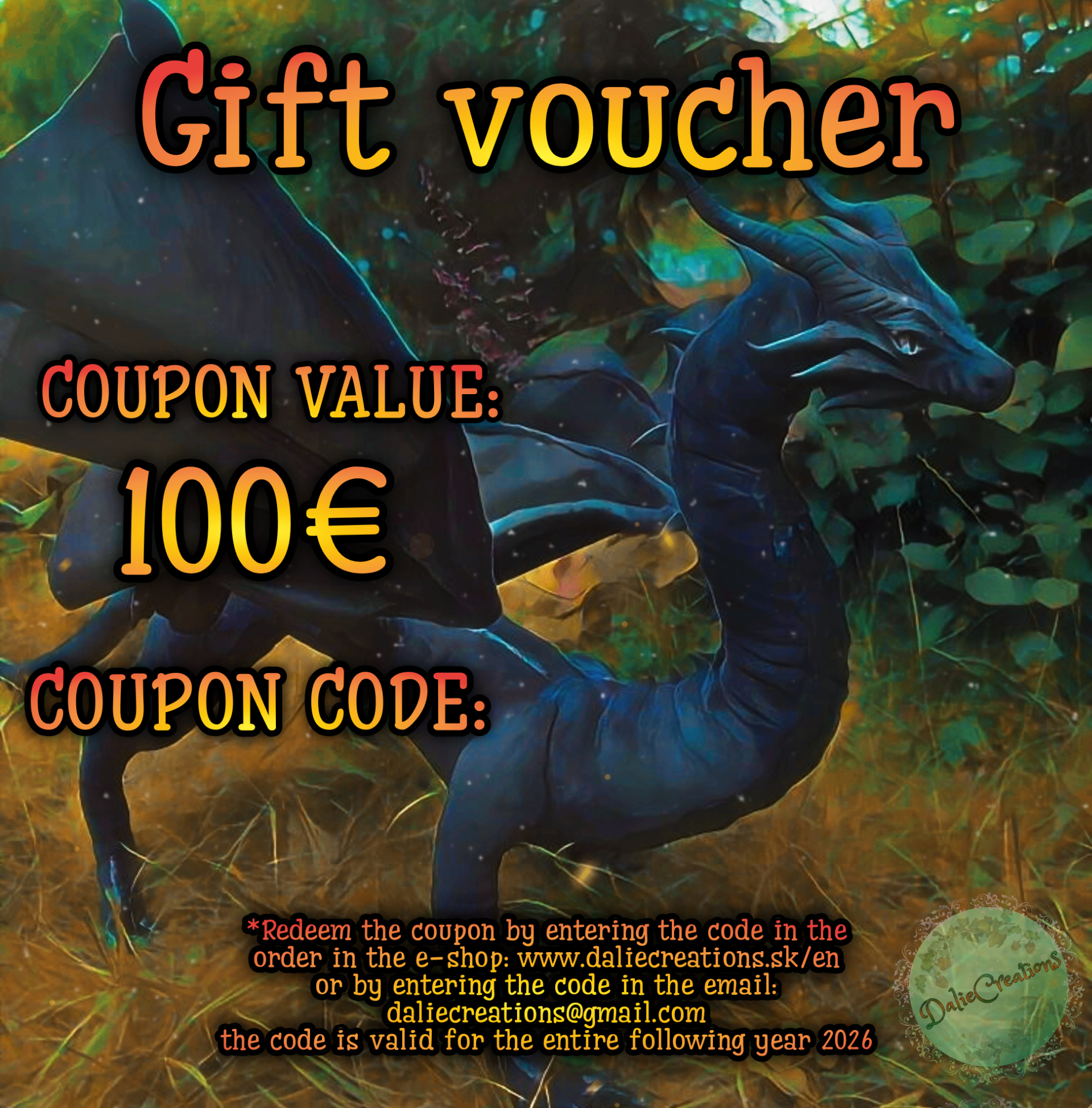 The gift voucher has a maximum validity of 1 year and can be applied to all e-shop products or for custom creations.