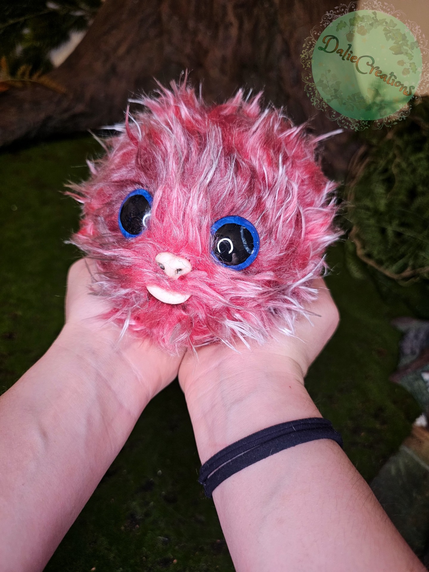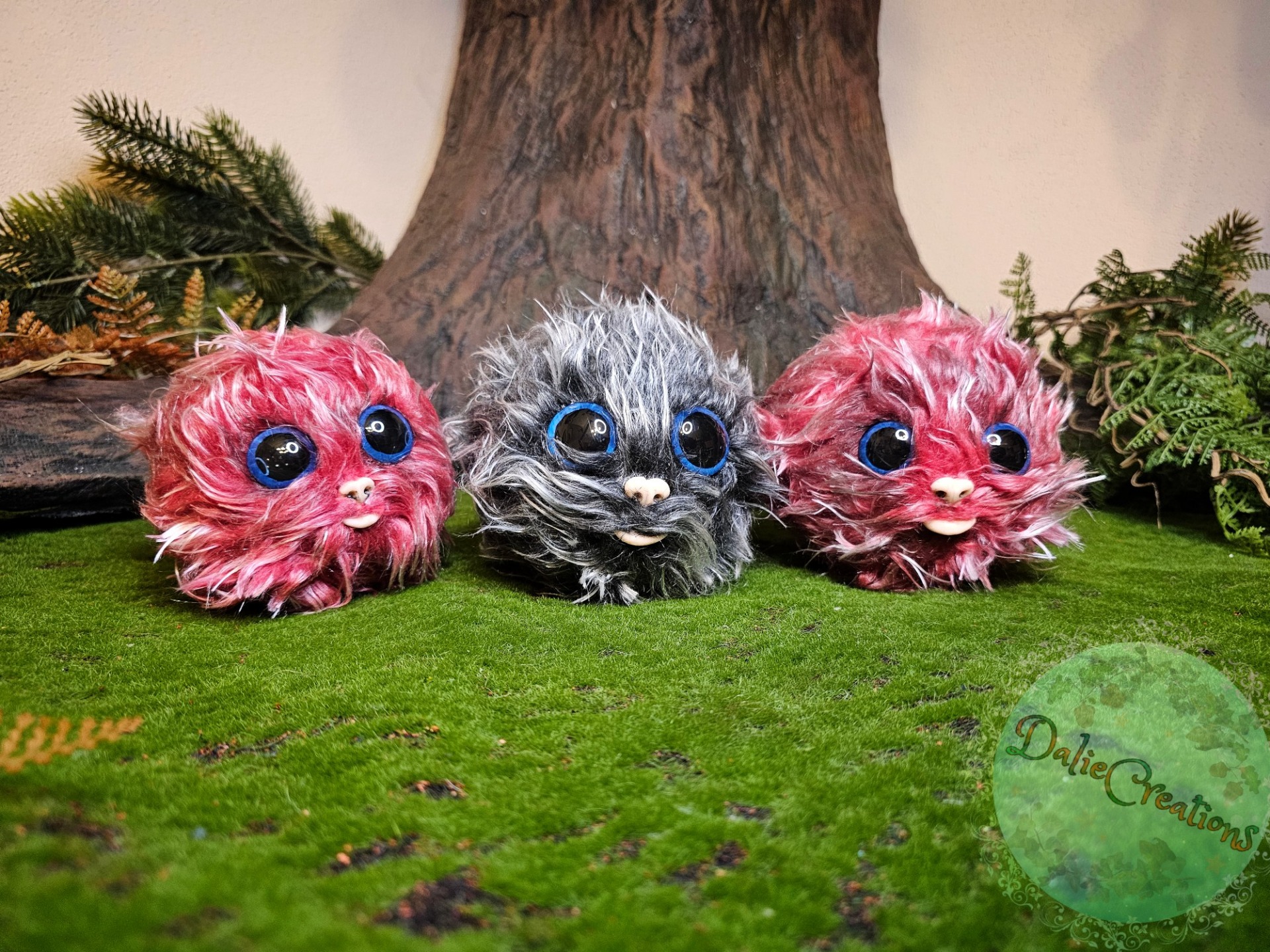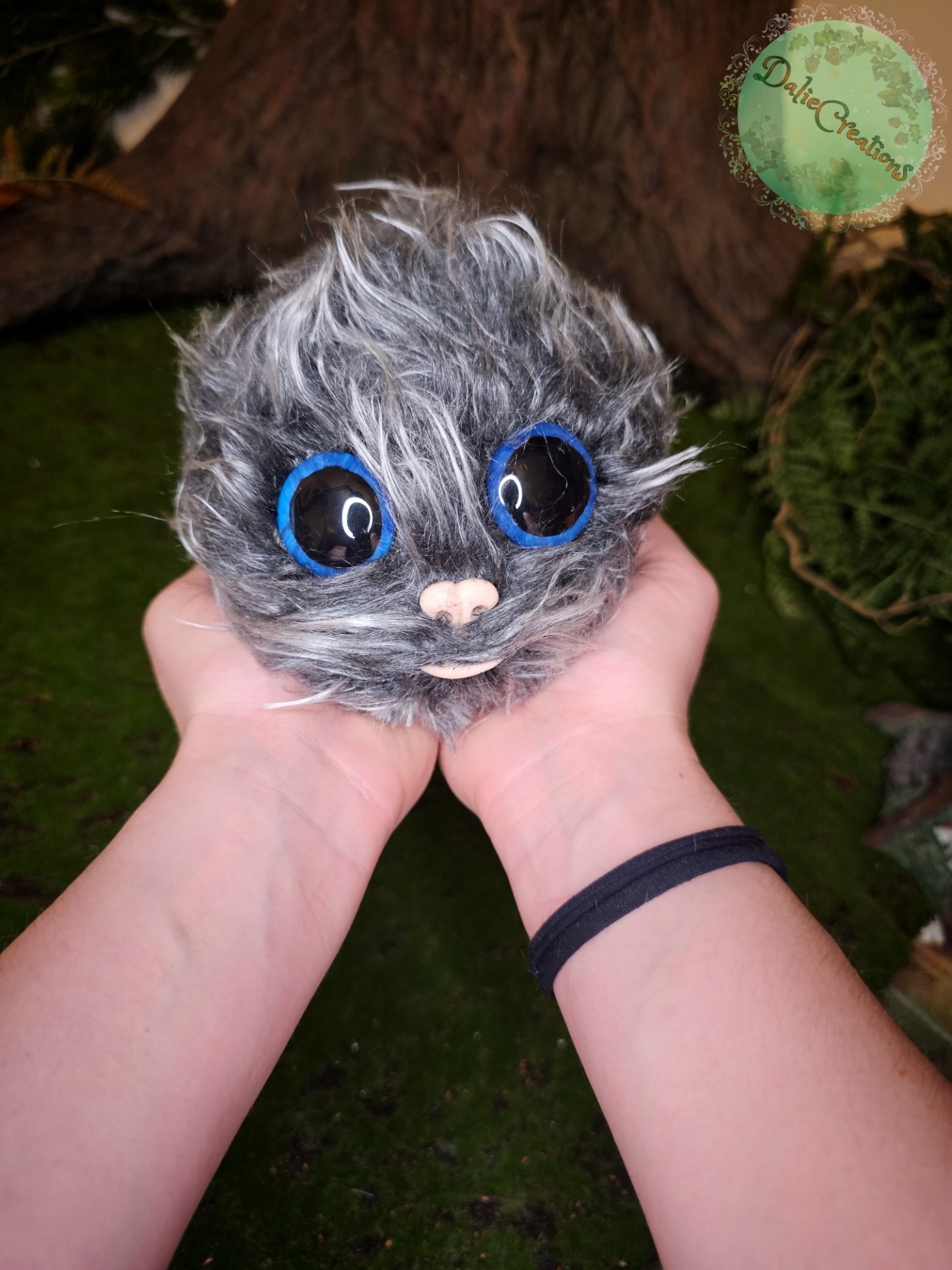 Materiály: vata, akrylové farby, polymérová hlina, lak, sklenené kabošony - očká